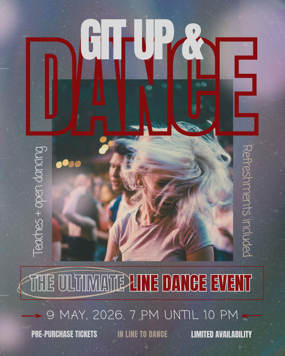 Join us for the Git Up & Dance Event, brought to you by In Line To Dance (Cameron and Ashlyn), Curtis Dooma (ThatLineDanceCowboy), and Tiffany Parada! United by our passion for line dancing, we invite dancers of all skill levels to come together and enjoy a fantastic evening of line dancing.